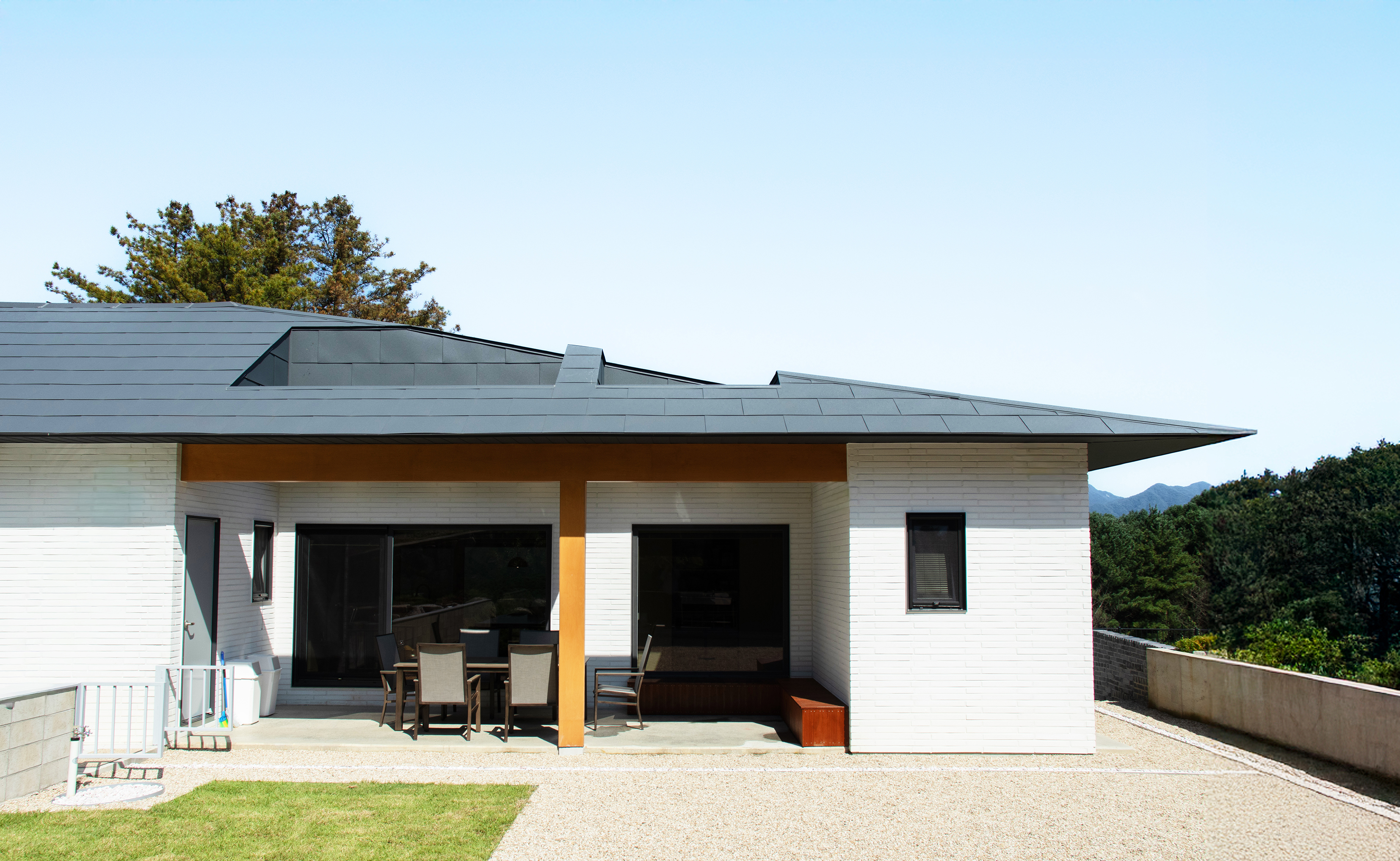 <연하다헌(煙霞茶軒 )>담 당 : 이재현, 김예빈, 이예희위 치 : 경기도 가평군 상면 연하리연면적 : 124.78㎡구 조 : 경량목구조시 공 : 드림팩토리주 방 : 바이키친사 진 : 재귀당 Architect : JAEGUIDANG ARCHITECTS / Park hyungeunProject team : Lee jaehyun, Kim yebin, Lee yeheeLocation : Yeonha-ri, Sang-myeon, Gapyeong-gun, Gyeonggi-do, Republic of KoreaGross floor area : 124.78㎡Structure : Lightweight Wood ConstructionBuilder : Dream FactoryKitchen : BuykitchenLandscape Design : Garden yulArchitecture Photograph : Roh kyung